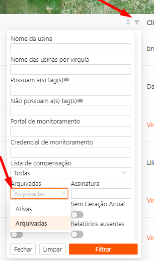 VocĂȘ pode modificar o status da usina a qualquer momento (desarquivar), basta ir novamente lĂĄ no cadastro e ativar ou desativar o checklist de monitoramento.