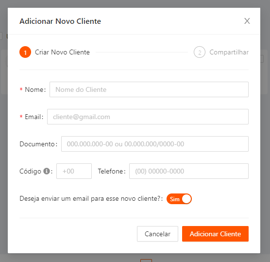 Nome: preencha com o nome completo do seu cliente ou como ele prefere ser chamado